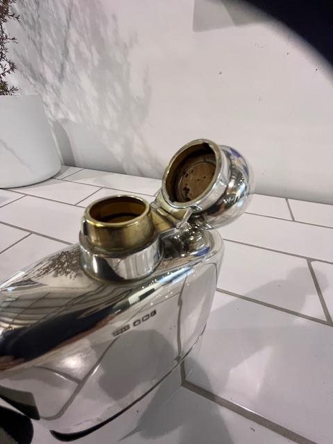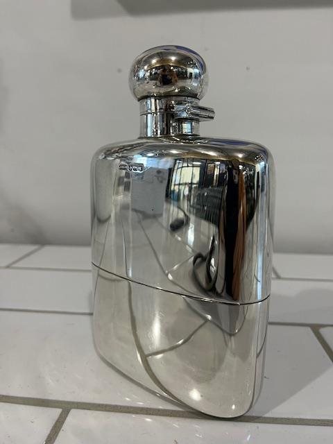 This quality 1924 sterling silver whisky flask is in beautiful condition with no dents or blemishes. Manufactured by JD&S, (James Dixon & Sons), in Sheffield, England.