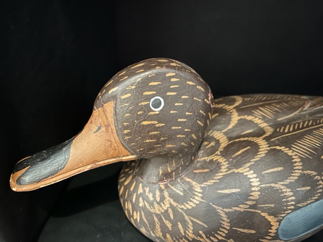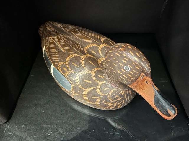 Early hand made Mallard duck decoy. In great condition for its age with the painted colours still quite vibrant. Great painted feather details. A very decorative object.