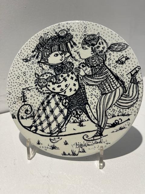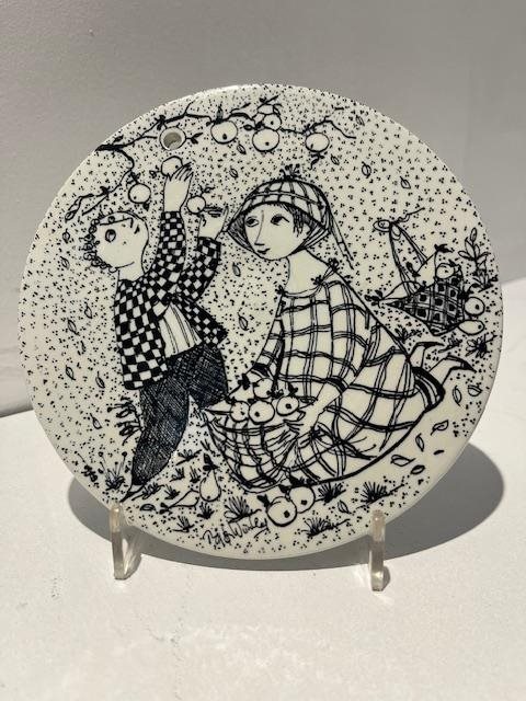 12 different designs featuring each month of the year. These ceramic wall tiles were designed by Bjorn Winblad and manufactured in the 1970's by Nymølle in Denmark.
