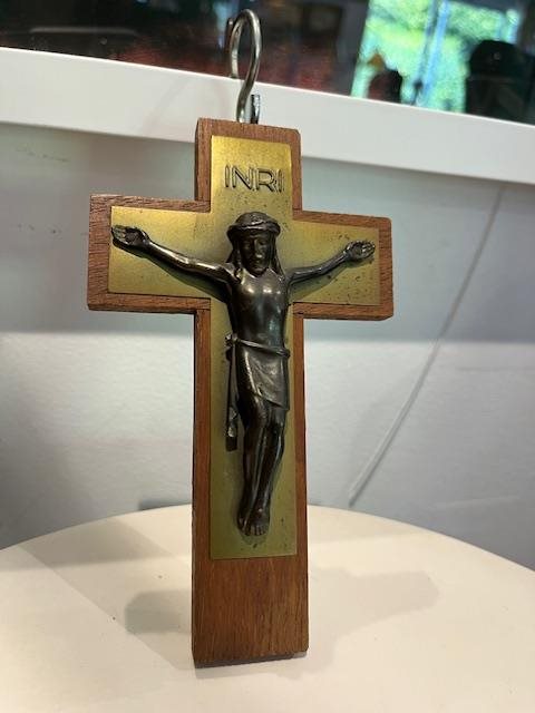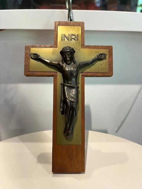Lovely wood and brass crucifix with bronze corpus.
