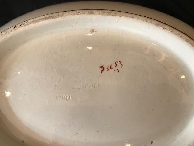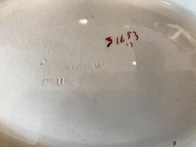 On base of the 3 pieces is the pattern number 3 1653. Each also has the impressed stamp "Wedgewood". Meat platter also has a painted "B" (for Bentley?).