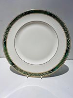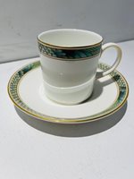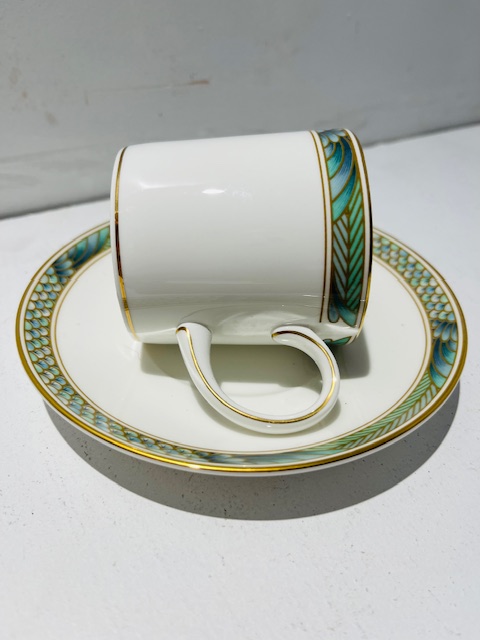 Wedgwood’s “Icarus” pattern was introduced in 1992 as part of the company’s fine bone china range, made in England. Combining classical inspiration with rich teal and gilt detailing, it reflects the refined formal tableware aesthetic of the late 20th century. Now discontinued, English-made examples are increasingly sought after by collectors and those wishing to replace or expand existing services.